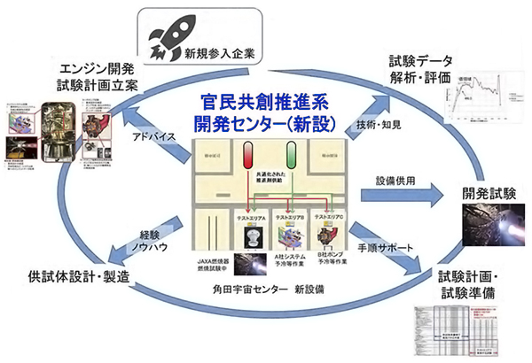 民間事業者の液体ロケットエンジン開発および試験の実施をハード・ソフトの両面から支援するため、「官民共創推進系開発センター」を新設します。